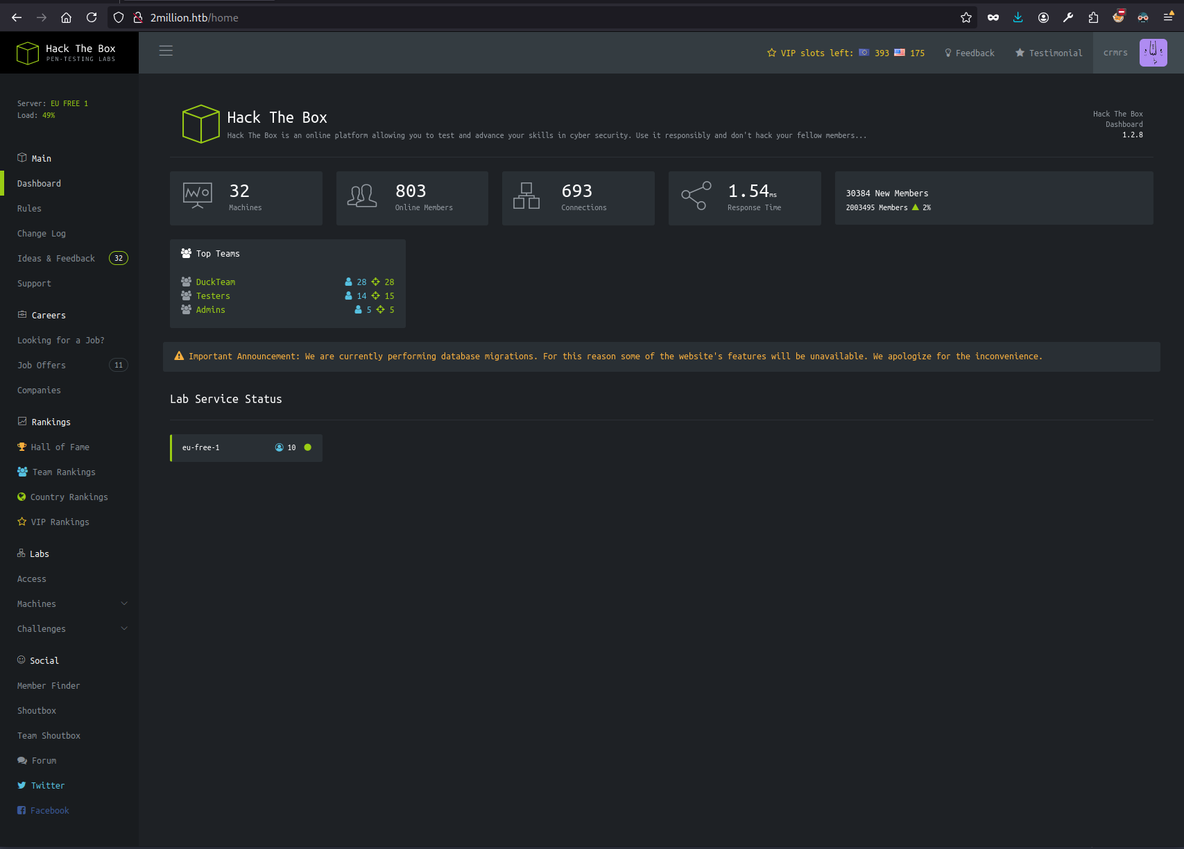 The old HackTheBox portal was visible from now on: