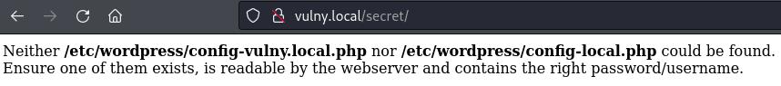 Neither /etc/wordpress/config-vulny.local.php nor /etc/wordpress/config-hmv.php could be found.