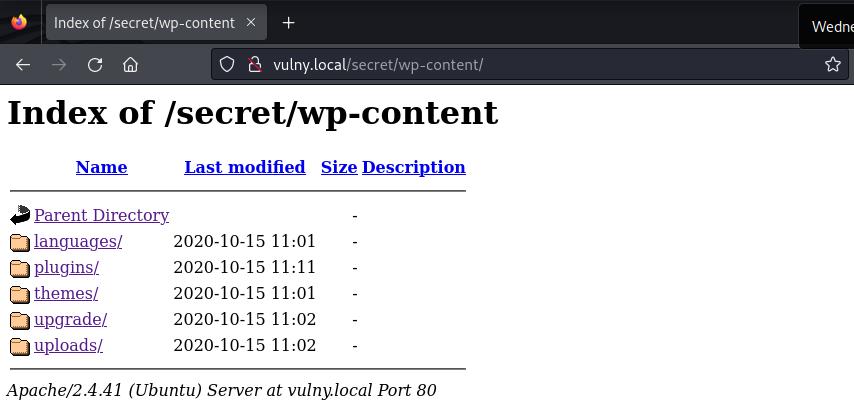 301 GET 9l 28w 316c http://vulny.local/secret/wp-admin => http://vulny.local/secret/wp-admin/